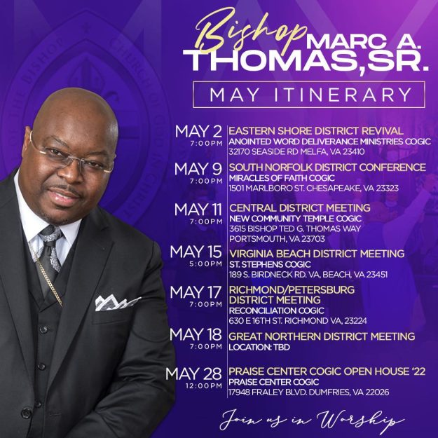 If you’re in the area, please join our Prelate, Bishop Marc A. Thomas, Sr., for one of the ministry engagements!