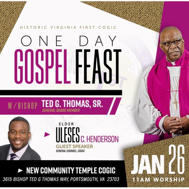 Join us on January 26, 2019 at 11:00 am for our Annual One Day Gospel Feast hosted at New Community Temple COGIC, Portsmouth, VA. Our guest speaker with be Elder…