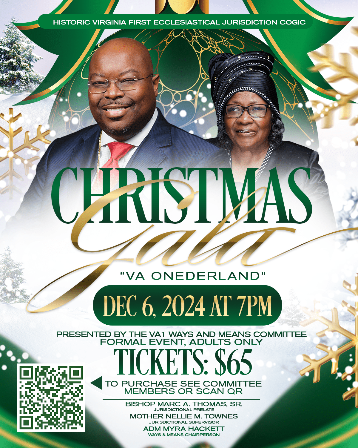 Join Bishop Marc A. Thomas, Sr., Mother Nellie Townes, and the Saints of the Historic Virginia First Ecclesiastical Jurisdiction for the “VA Onederland,” our annual Christmas Gala on December 5,…
