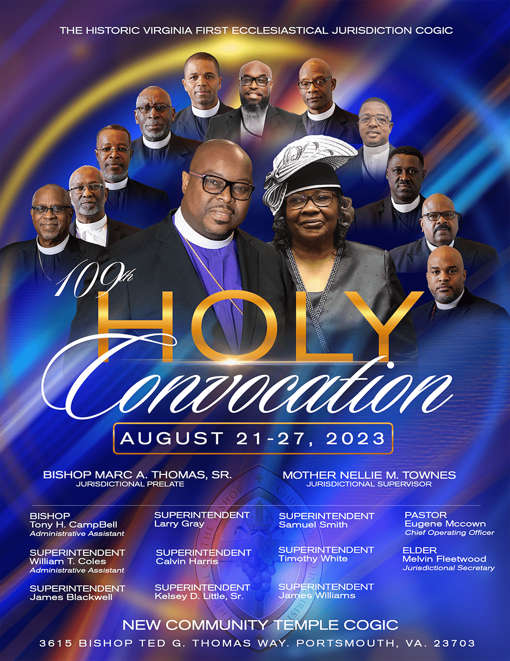 July 21, 2023 (Portsmouth, Virginia) – Calling Saints from Virginia, North Carolina, and the surrounding areas. The 109th Holy Convocation for the Historic Virginia First Ecclesiastical Jurisdiction will be held…