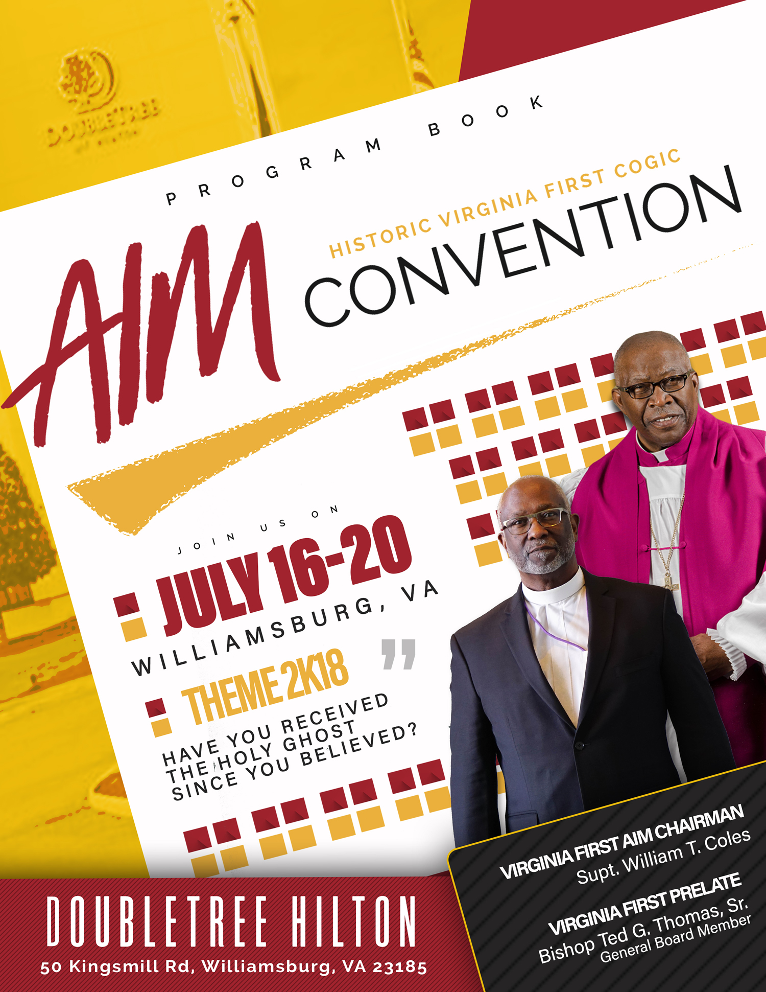 DetailsClick HERE to register Join us July 16-20, 2018 for the 2018 Historic Virginia First Jurisdiction’s Auxiliaries In Ministry (AIM) Convention to be held in Williamsburg, VA at the DoubleTree Hilton…