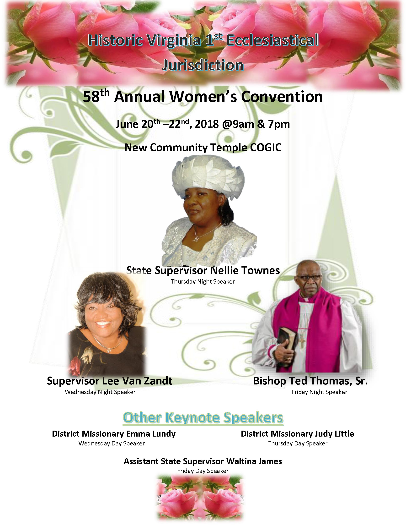 DetailsLive Stream Shut-In Daily Sessions Evening Speakers Official Day Registration Accommodations Join us August 19-26, 2018 as the Historic First Ecclesiastical Jurisdiction of Virginia celebrates its 104th Holy Convocation at…
